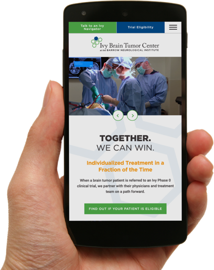 A patient-friendly, easy-to-navigate website, with a hopeful message was the key to our design and concept for this website. We understood from Ivy Center the frightening news visitors to their website may be dealing with, and delivered an empathetic experience to help patients get the information they need about experimental Phase 0 clinical trials.